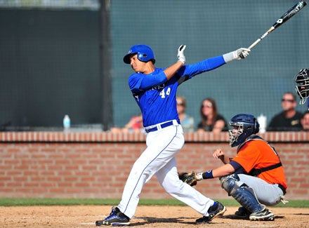 Heading into today's season-ending third-place game at Cal State Fullerton, he's batting .306 with two doubles, a home run and 12 walks in 62 official at-bats.