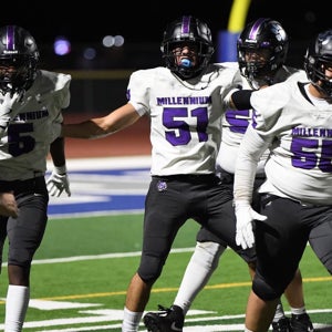 On Friday, Nov 1, 2024, the Millennium Varsity Boys Football team lost their Millennium High School game against Sunrise Mountain High School by a score of 14-21.