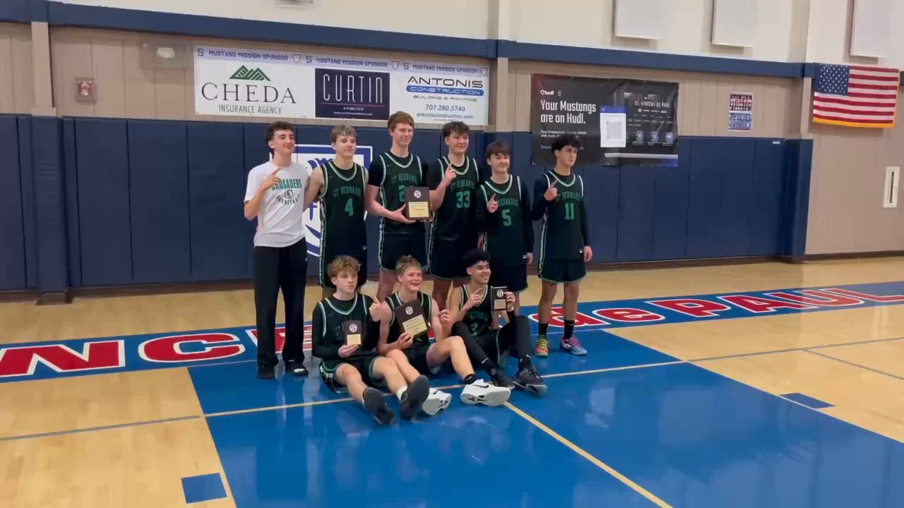 On Saturday, Jan 3, 2026, the St. Bernard's JV Boys Basketball team won their Mustang Winter Classic Championship game against St. Vincent de Paul High School by a score of 55-48.
