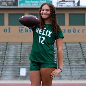 On Wednesday, Nov 5, 2025, the Helix Varsity Girls Flag Football team lost their game against Mira Mesa High School by a score of 20-27.