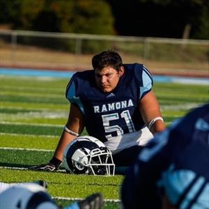 My name is Antonio calleros and I am a guard for Ramona football, I play both sides LG and RG. I try my best every time I am on that field and I stay trying to be consistent with things , but I love football and football is my passion so I’m not ever going to give up on this sport no matter how bad the limits push me