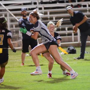 On Wednesday, Oct 23, 2024, the Columbine Varsity Girls Flag Football team lost their @ CCSD Legacy Stadium game against Grandview High School by a score of 2-7.