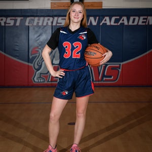 On Thursday, Jan 8, 2026, the First Christian Varsity Girls Basketball team won their game against Oak Hall High School by a score of 44-15.