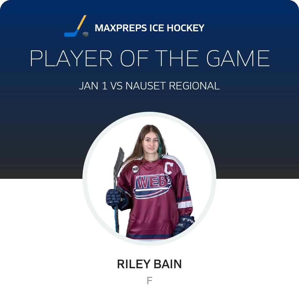 Congratulations to #6 Riley Bain for being selected the East Bridgewater Girls Ice Hockey Player of the Game.