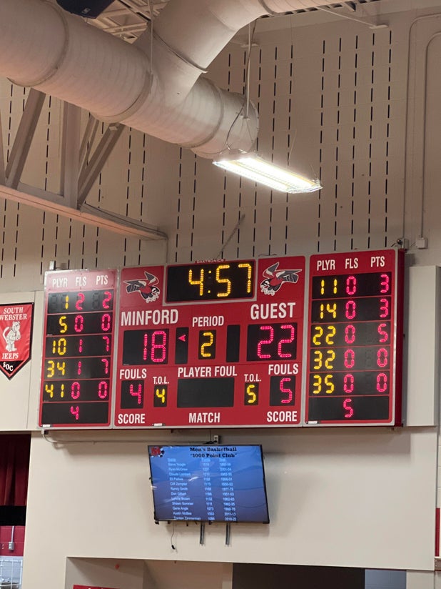 January 10, 2023: Minford, OH 45653 Minford Falcons (Minford, OH) backers were pleased Tuesday as they saw their basketball squad hold off the visiting Wheelersburg Pirates (Wheelersburg, OH), 65-60 in a league bout.