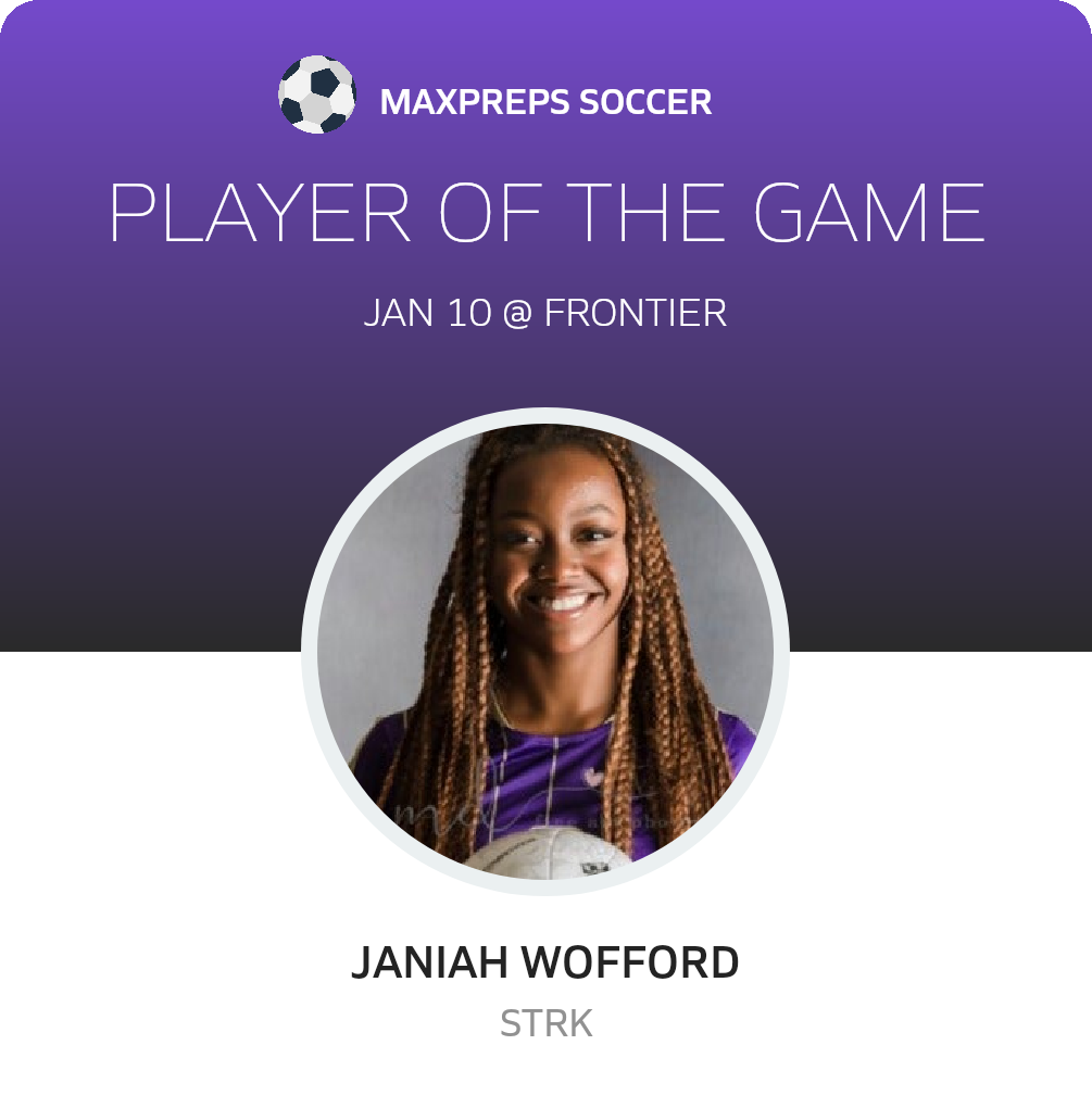 Congratulations to #9 Janiah Wofford for being selected the Ridgeview Girls Soccer Player of the Match.