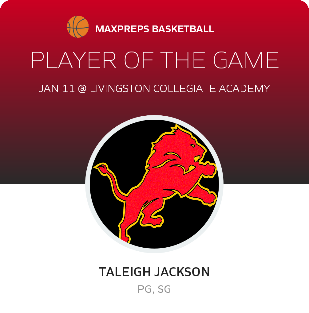 Congratulations to #1 Taleigh Jackson for being selected the Capitol Girls Basketball Player of the Game.