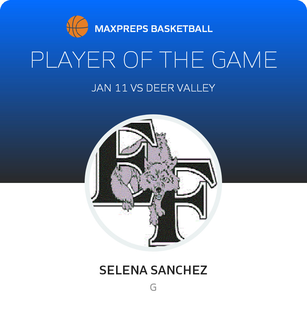 Congratulations to #22 Selena Sanchez for being selected the Estrella Foothills Girls JV Basketball Player of the Game.