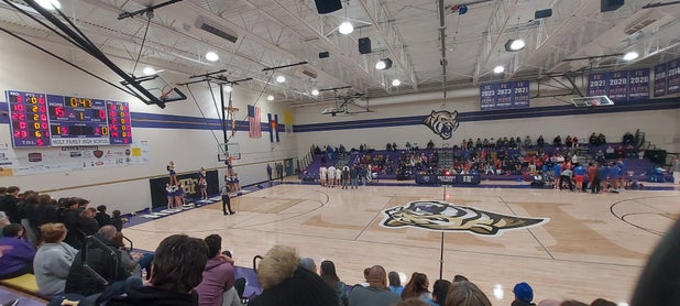 January 11, 2024: Broomfield, CO 80020 Fans at Thursday's league challenge between the Holy Family Tigers (Broomfield, CO) and the visiting Centaurus Warriors (Lafayette, CO), saw Holy Family's basketball squad wallop Centaurus by a count of 63-36.