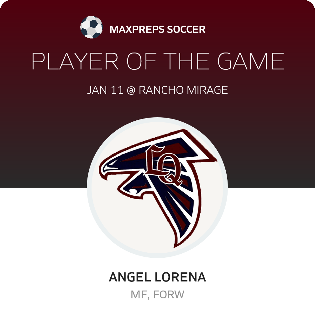 Congratulations to #22 Angel Lorena for being selected the La Quinta JV Soccer Player of the Match.