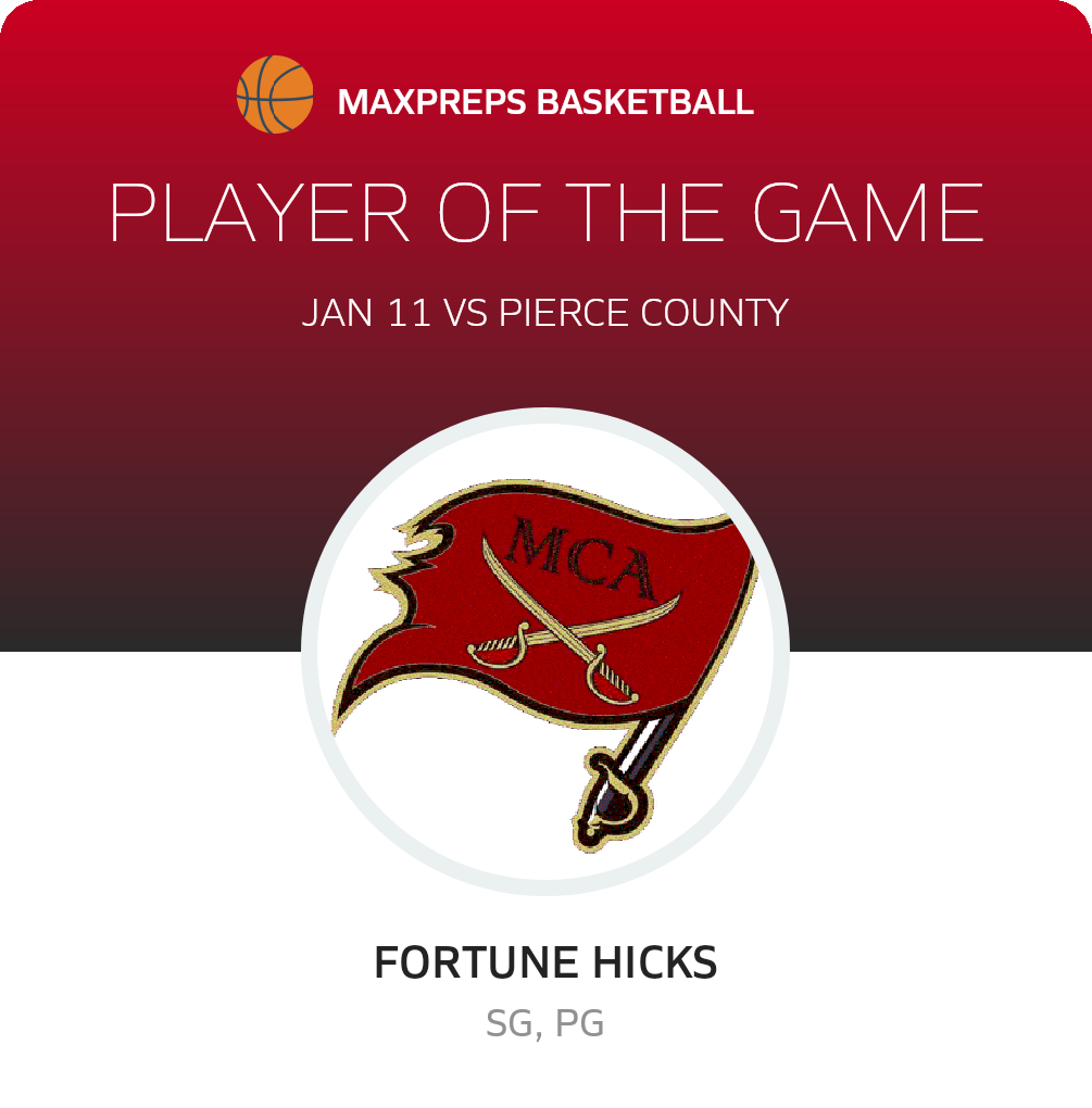 Congratulations to #11 Fortune Hicks for being selected the McIntosh County Academy Basketball Player of the Game.