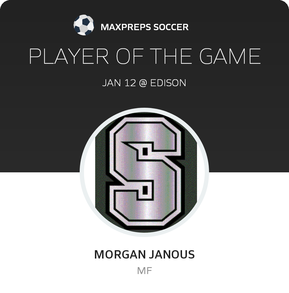 Congratulations to #9 Morgan Janous for being selected the Sotomayor Girls Soccer Player of the Match.