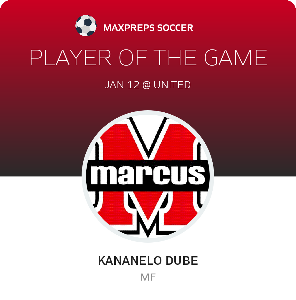 Congratulations to #19 Kananelo Dube for being selected the Marcus Soccer Player of the Match.