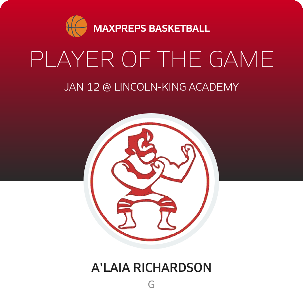 Congratulations to #1 A'Laia Richardson for being selected the Mt. Clemens Girls Basketball Player of the Game.
