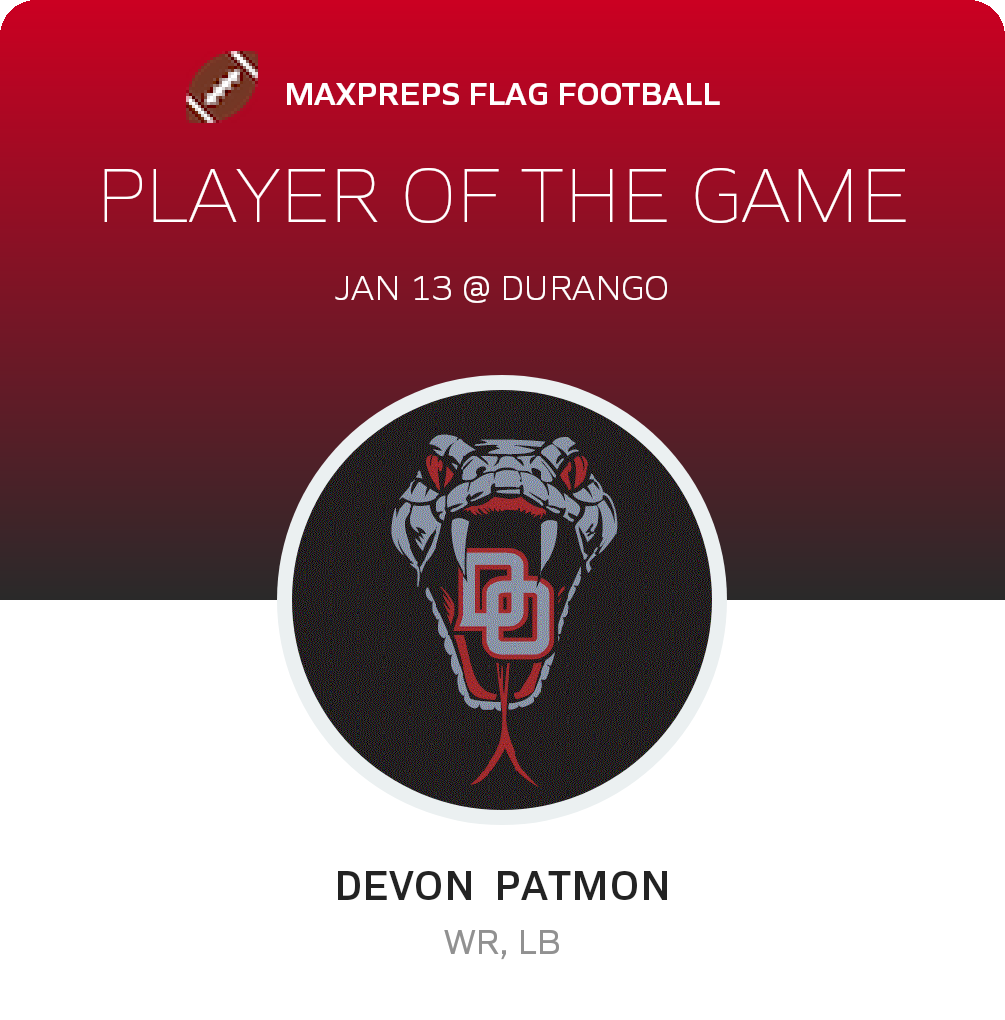 Congratulations to #32 Devon Patmon for being selected the Desert Oasis Girls Flag Football Player of the Game.