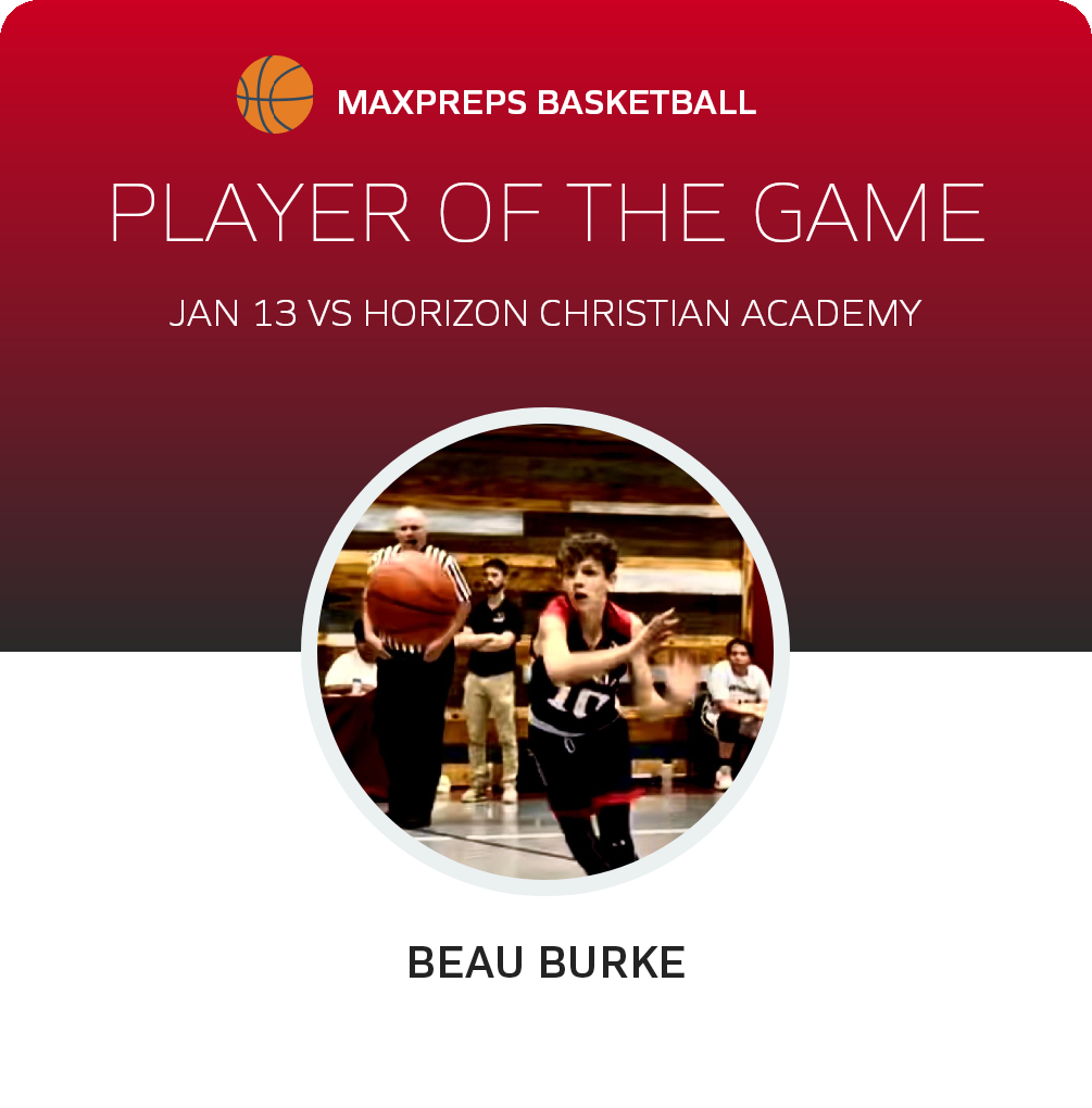 Congratulations to #10 Beau Burke for being selected the Aletheia Christian Academy JV Basketball Player of the Game.