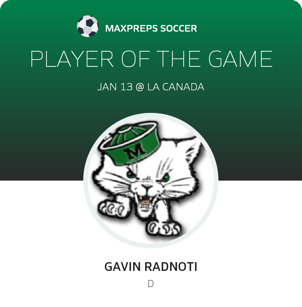 Congratulations to #26 Gavin Radnoti for being selected the Monrovia JV Soccer Player of the Match.