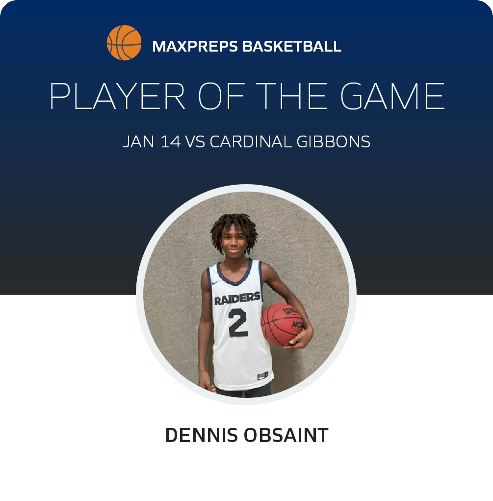 Congratulations to #2 Dennis Obsaint for being selected the Gulliver Prep Freshman Basketball Player of the Game.
