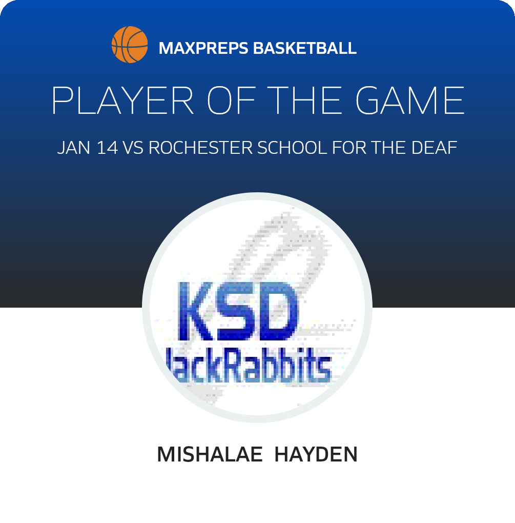Congratulations to #21 Mishalae Hayden for being selected the Kansas School for the Deaf Girls Basketball Player of the Game.