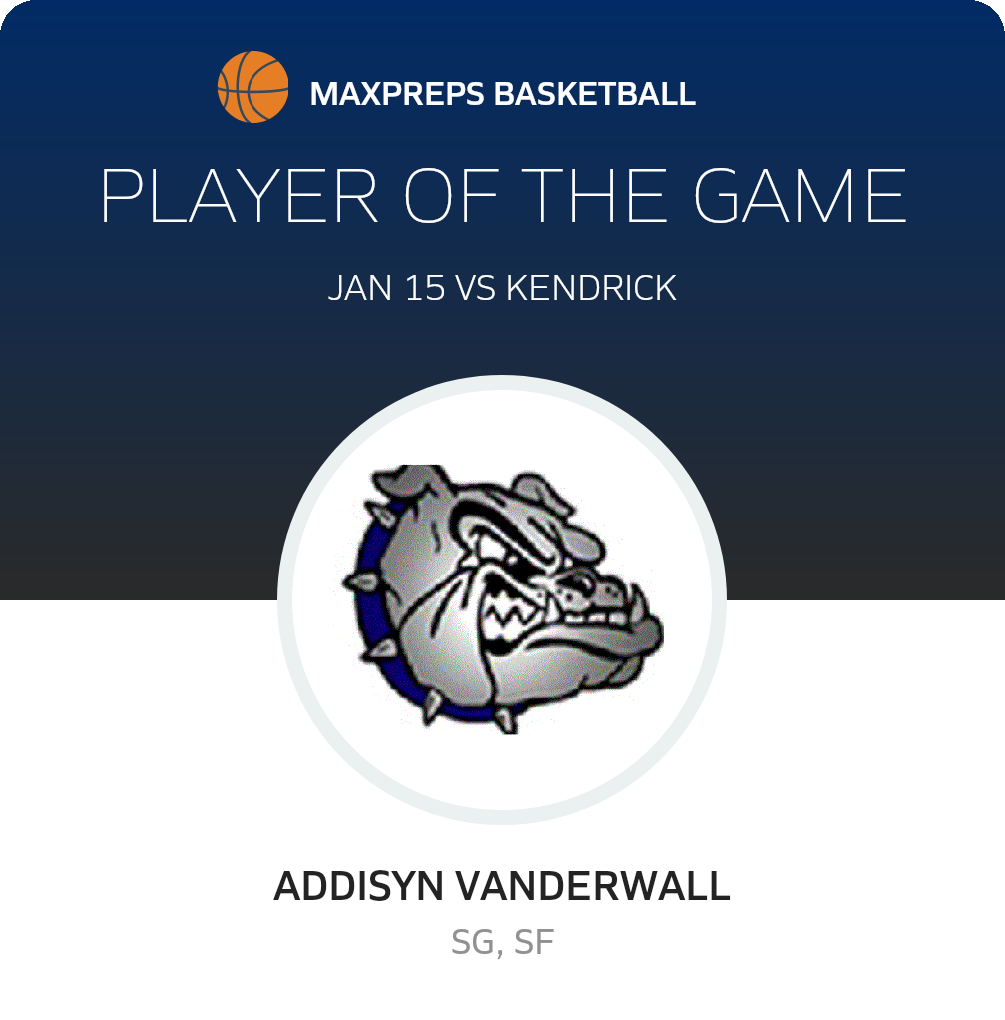 January 15, 2024: Grangeville, ID 83530 Grangeville Bulldogs (Grangeville, ID) backers were in high spirits Monday as they witnessed their basketball squad bounce the visiting Kendrick Tigers (Kendrick, ID), 76-51 in a non-league bout.