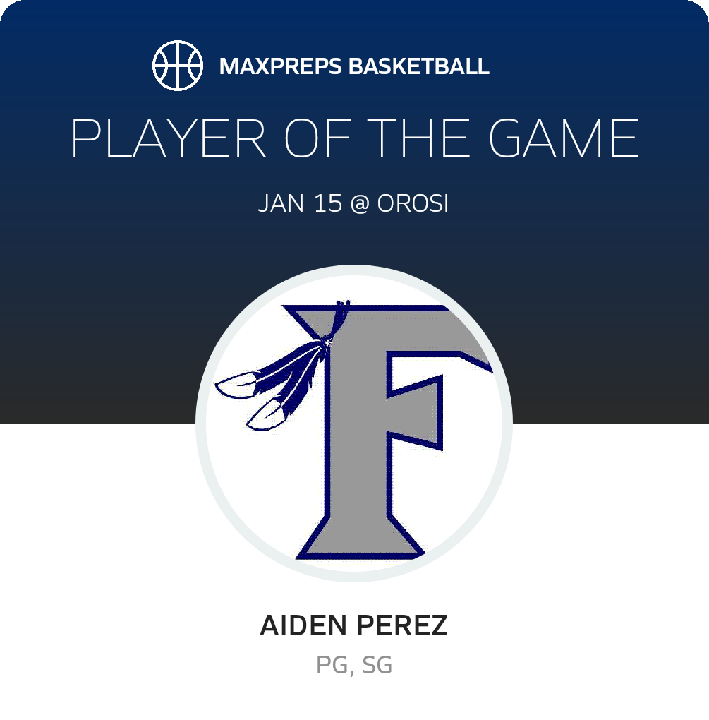 Congratulations to #0 Aiden Perez for being selected the Farmersville Basketball Player of the Game.