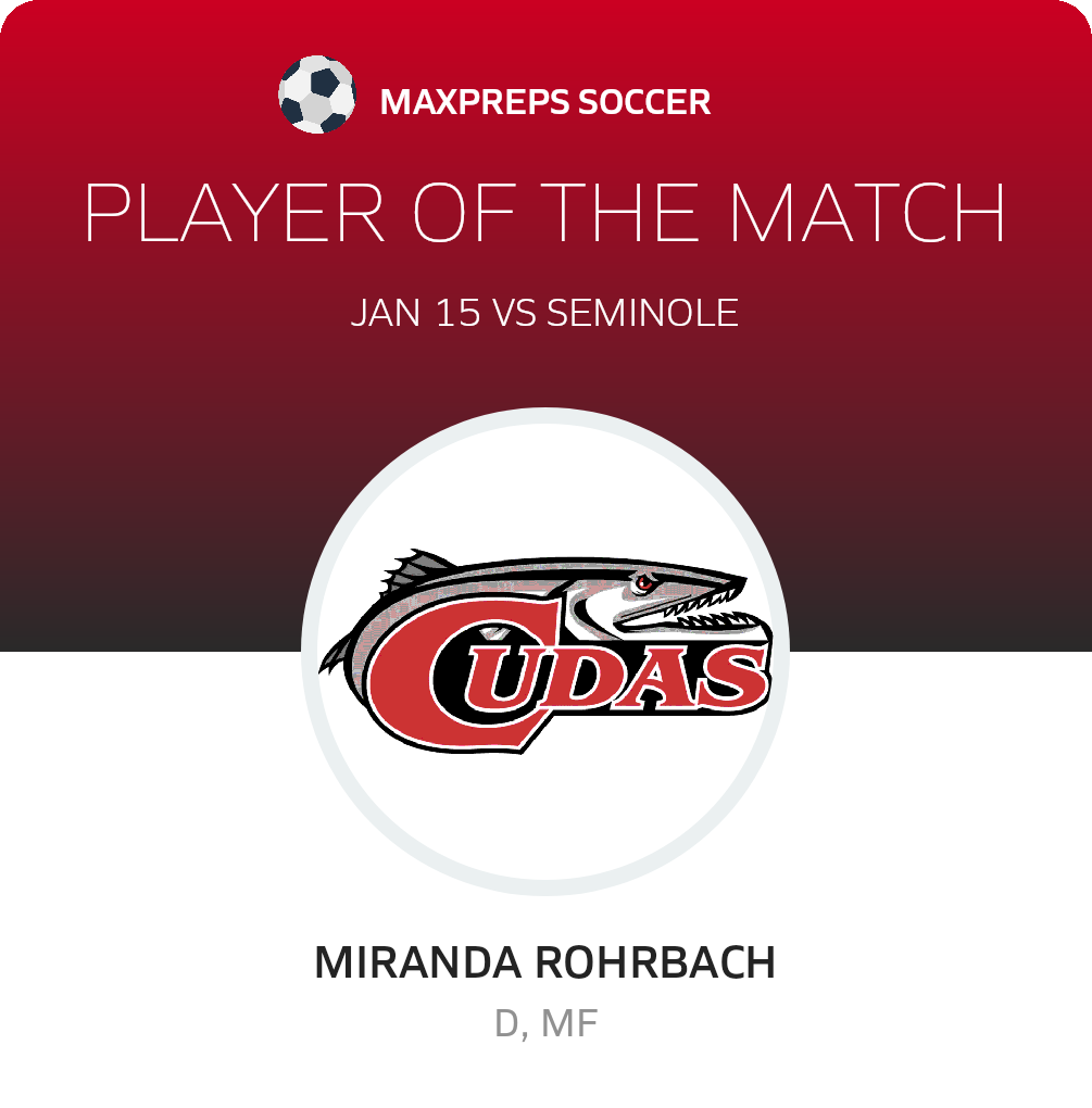 Congratulations to #13 Miranda Rohrbach for being selected the New Smyrna Beach Girls Soccer Player of the Match.