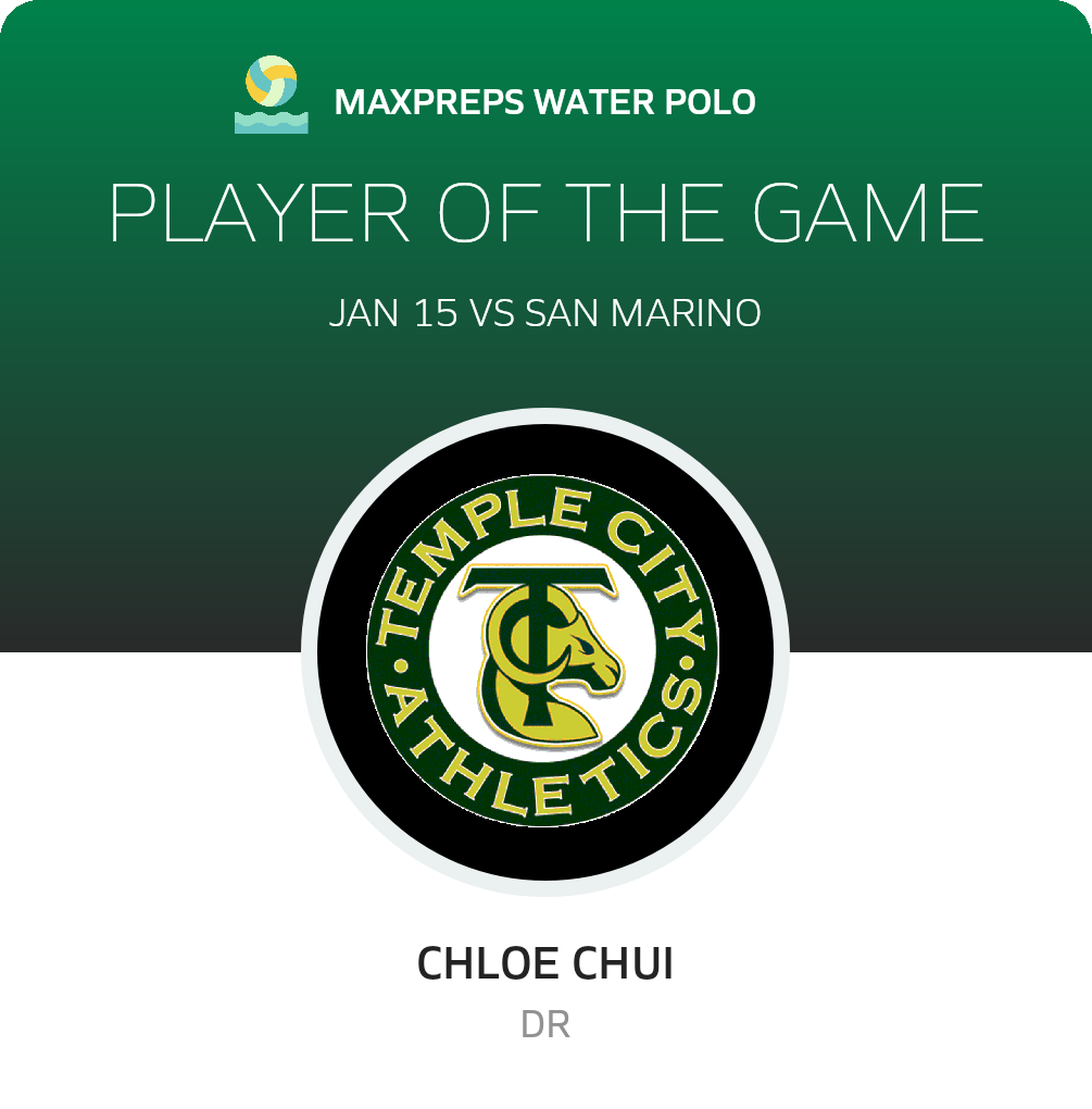 Congratulations to #13 Chloe Chui for being selected the Temple City Girls Water Polo Player of the Game.