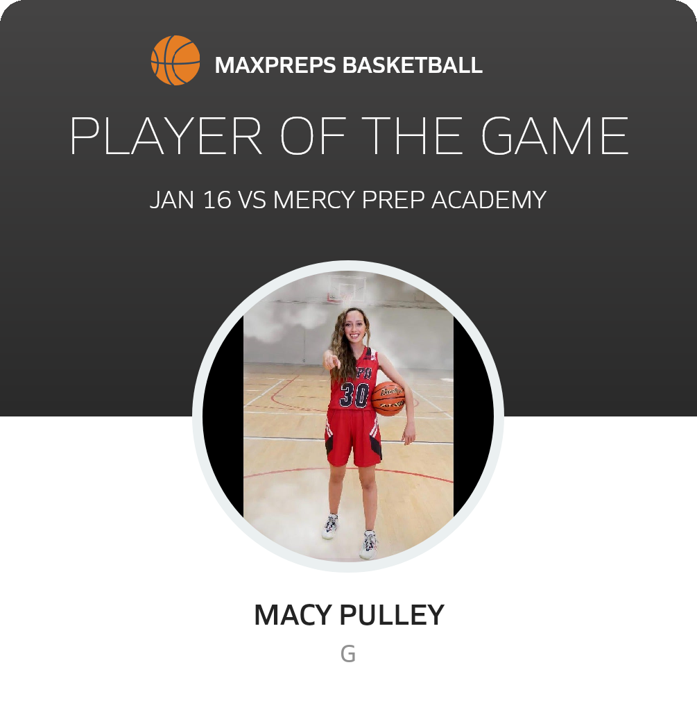 Congratulations to #30 Macy Pulley for being selected the Athens Christian Preparatory Academy Girls Basketball Player of the Game.
