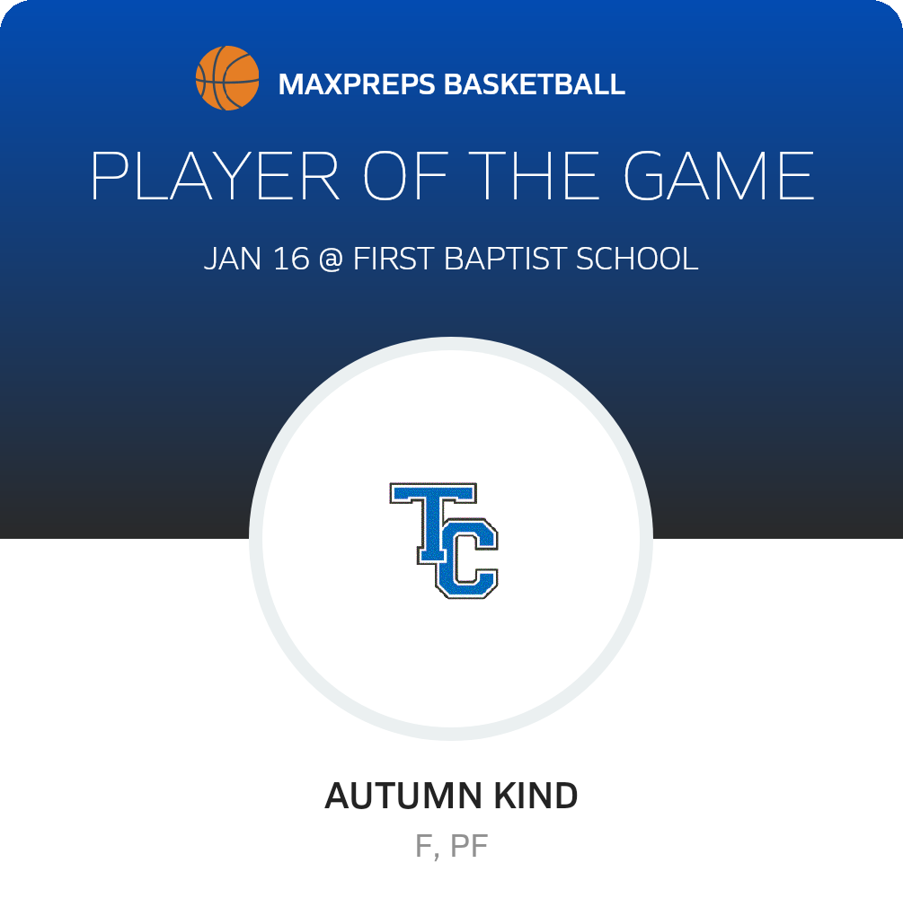 Congratulations to #21 Autumn Kind for being selected the Trinity Collegiate Girls Basketball Player of the Game.