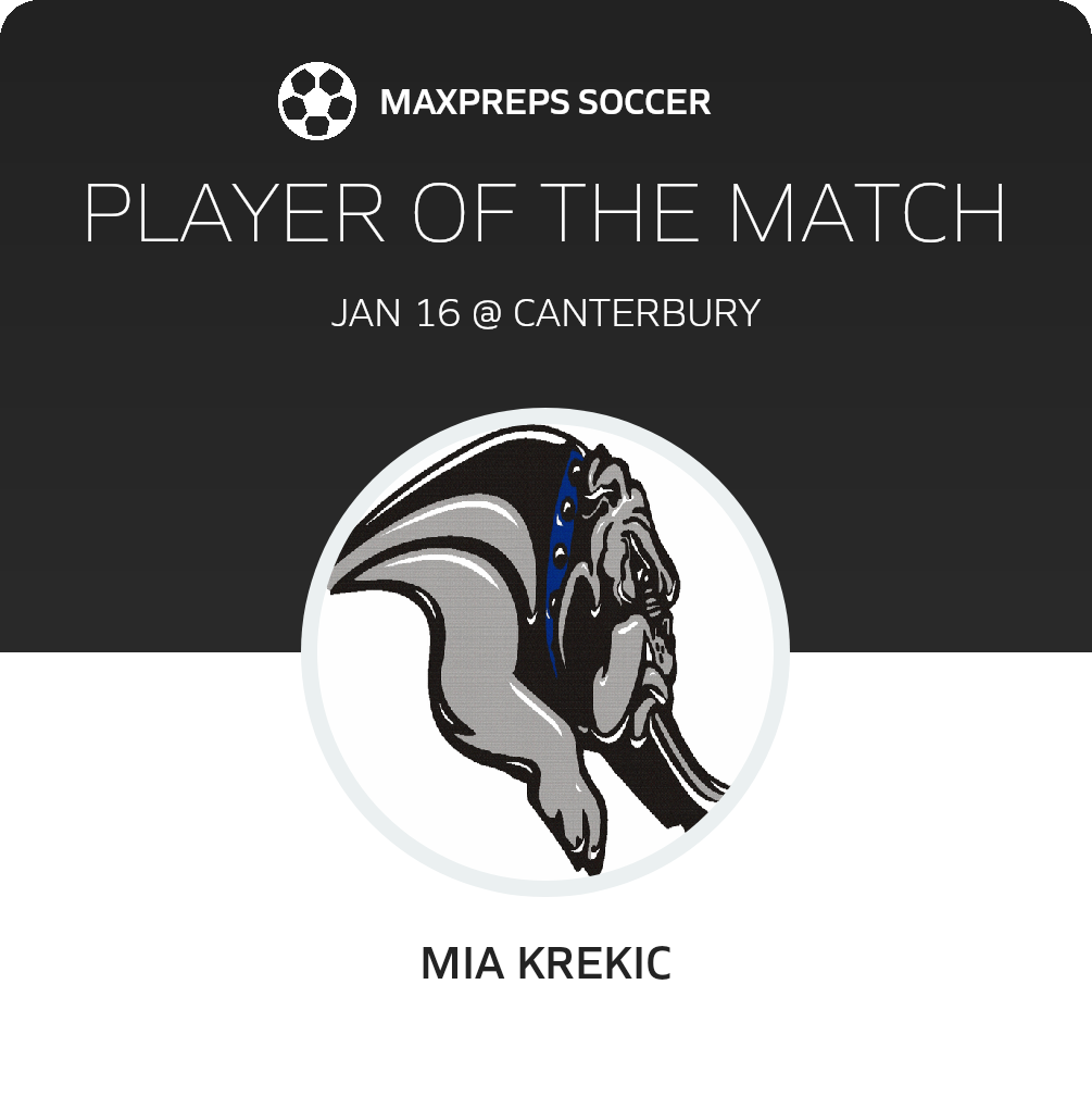 Congratulations to #8 Mia Krekic for being selected the Ida Baker Girls Soccer Player of the Match.