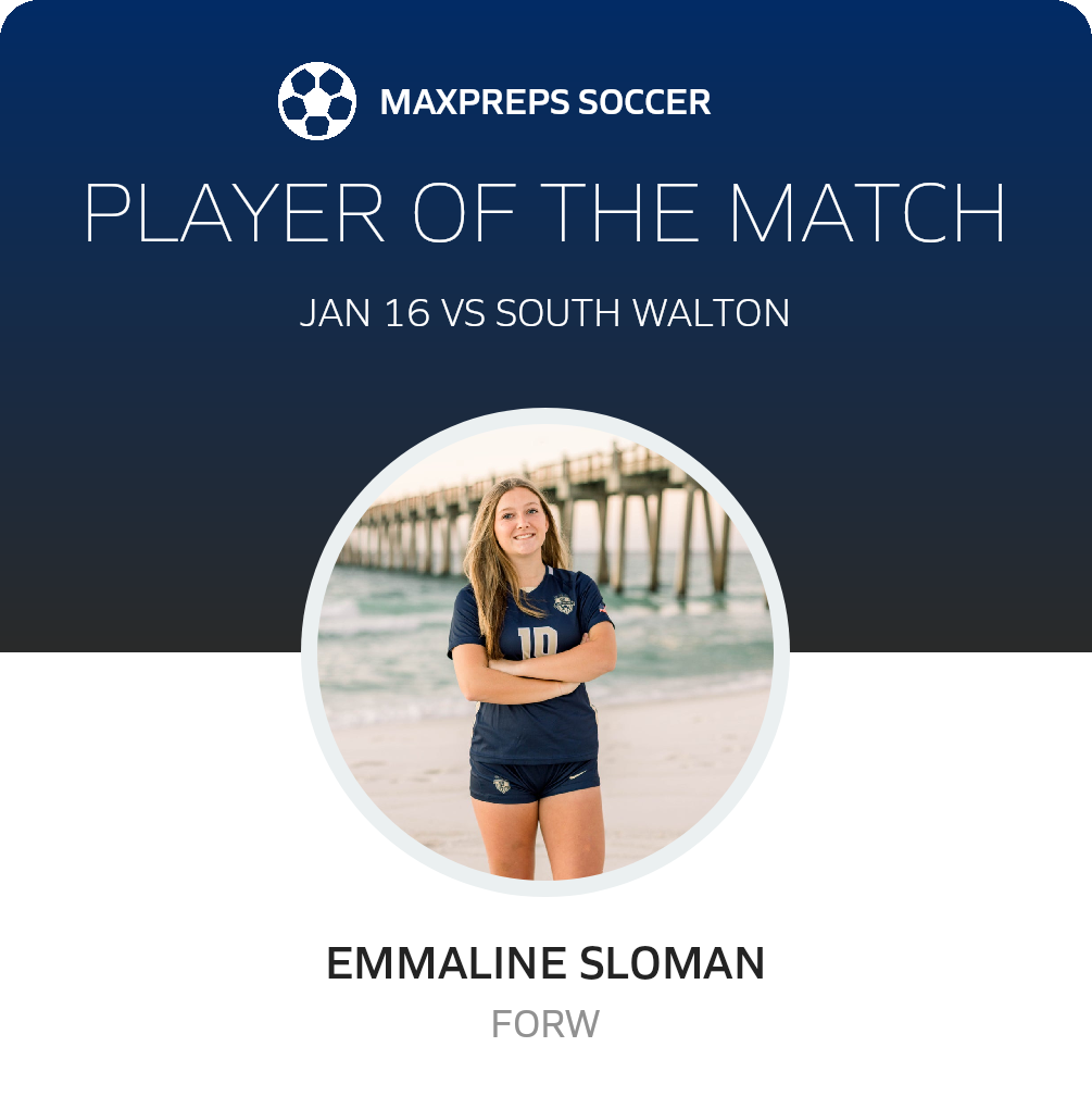 Congratulations to #10 Emmaline Sloman for being selected the Gulf Breeze Girls Soccer Player of the Match.
