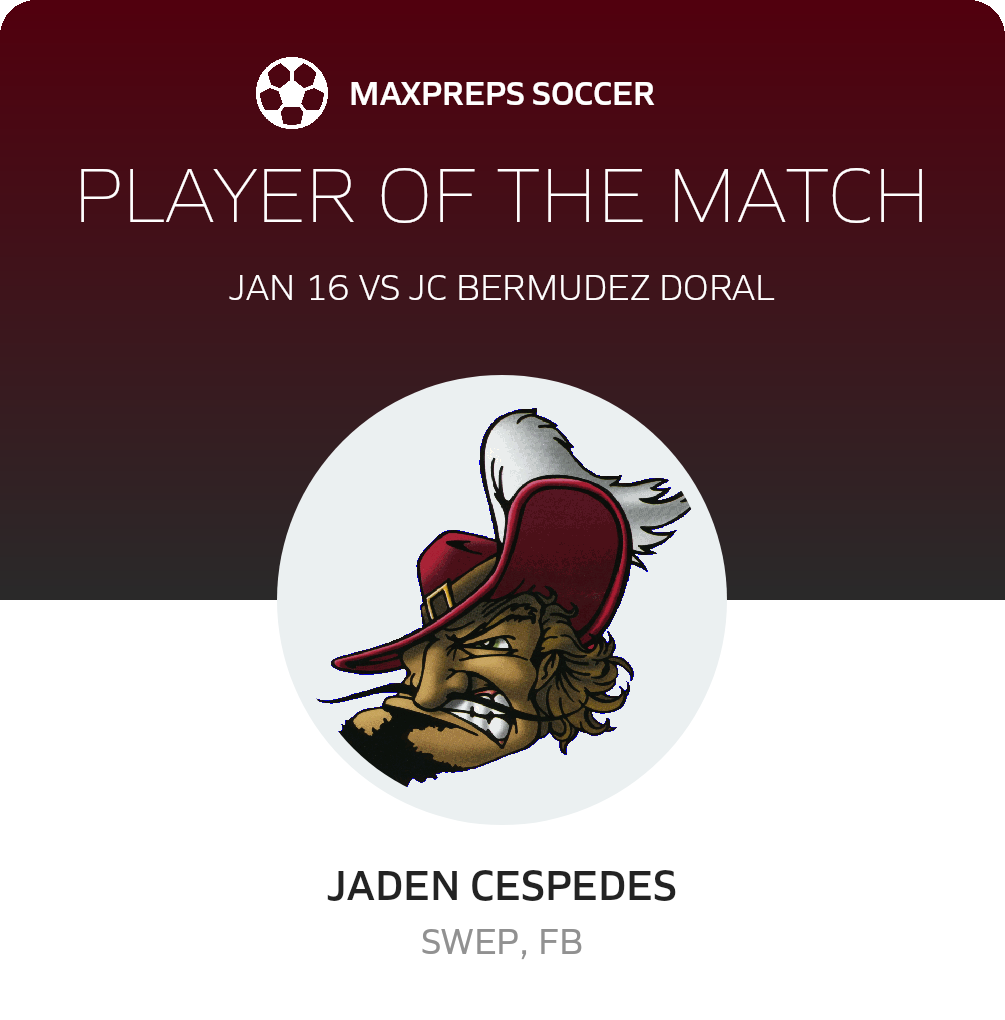 Congratulations to #23 Jaden Cespedes for being selected the Coral Gables Soccer Player of the Match.