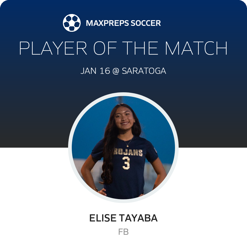 Congratulations to #3 Elise Tayaba for being selected the Milpitas Girls Soccer Player of the Match.