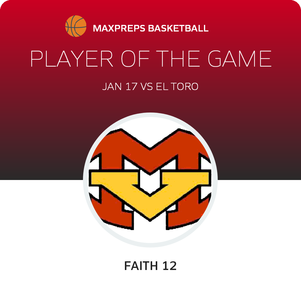 Congratulations to #12 Faith 12 for being selected the Mission Viejo Girls JV Basketball Player of the Game.