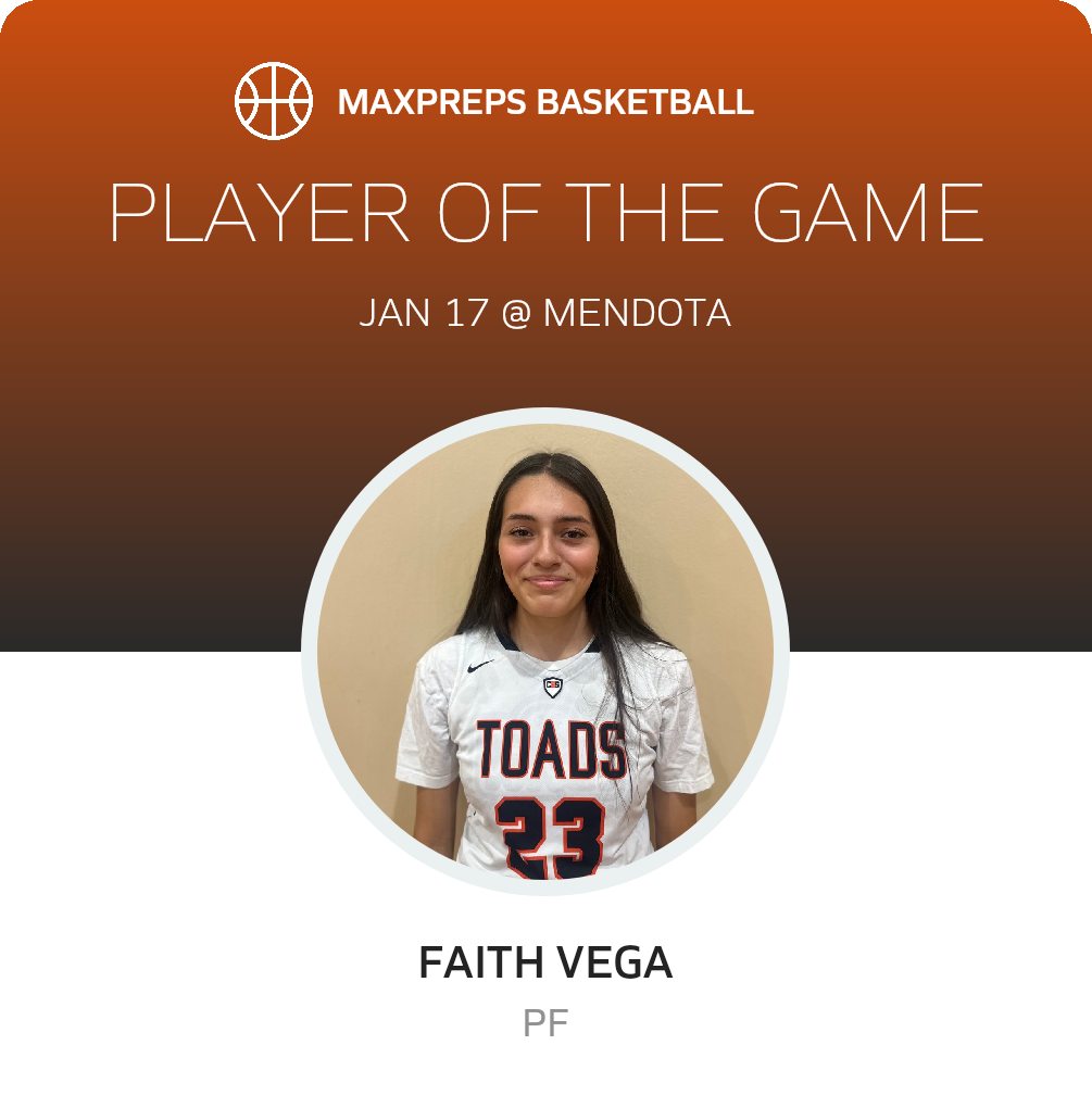 Congratulations to #23 Faith Vega for being selected the Coalinga Girls JV Basketball Player of the Game.