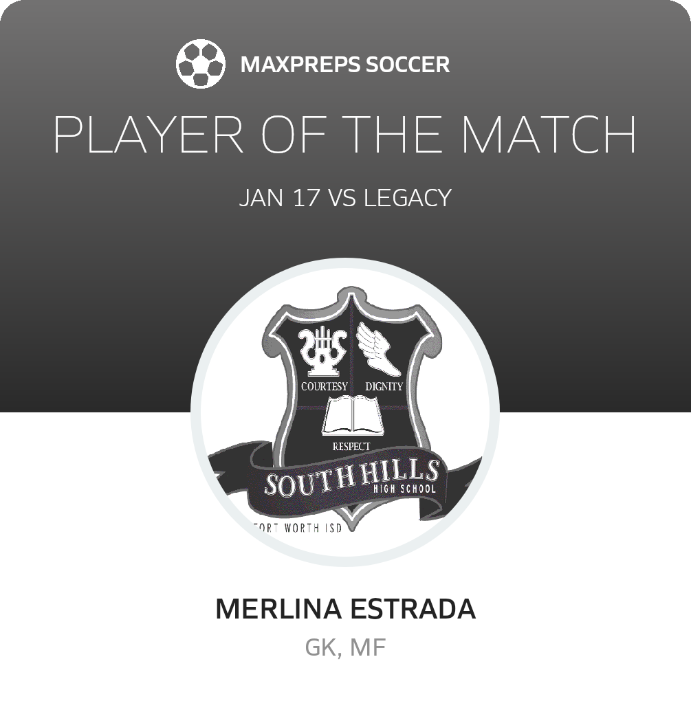 Congratulations to #00 Merlina Estrada for being selected the South Hills Girls Soccer Player of the Match.
