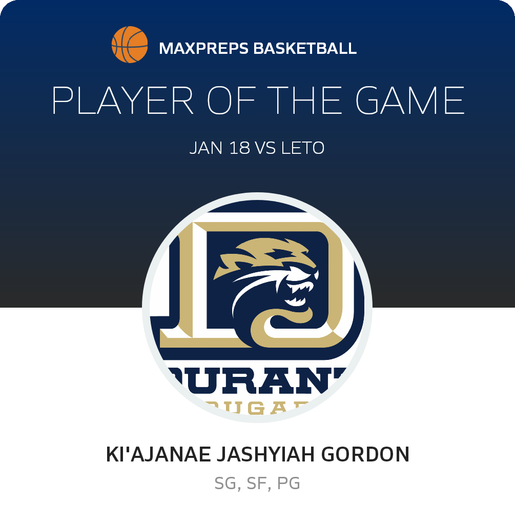 In their next game, the Cougars face the Freedom Patriots (Tampa, FL) in a non-league game, on Friday, January 20. Durant will attempt to move on its 14-4 season record. The Patriots enter the game with a 3-12 record after their 78-29 non-league loss to Hillsborough (Tampa, FL).