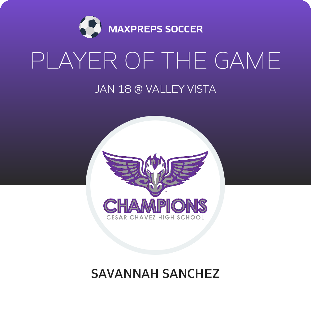 Congratulations to #7 Savannah Sanchez for being selected the Cesar Chavez Girls JV Soccer Player of the Match.