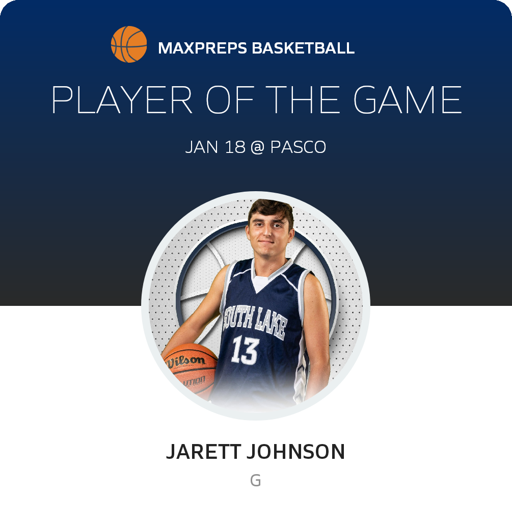 Congratulations to Jarett Johnson for being selected the South Lake JV Basketball Player of the Game.