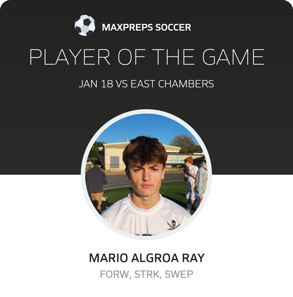 Congratulations to #10 MarÃo Algora Roy for being selected the Vidor Soccer Player of the Match.