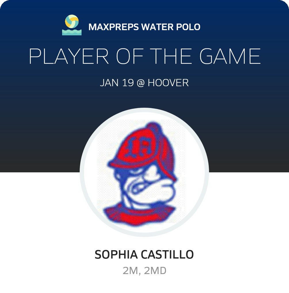 Congratulations to #4 Sophia Castillo for being selected the Los Altos Girls Water Polo Player of the Game.
