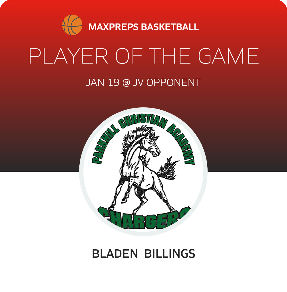 Congratulations to #11 Bladen Billings for being selected the Parkhill Christian Academy JV Basketball Player of the Game.