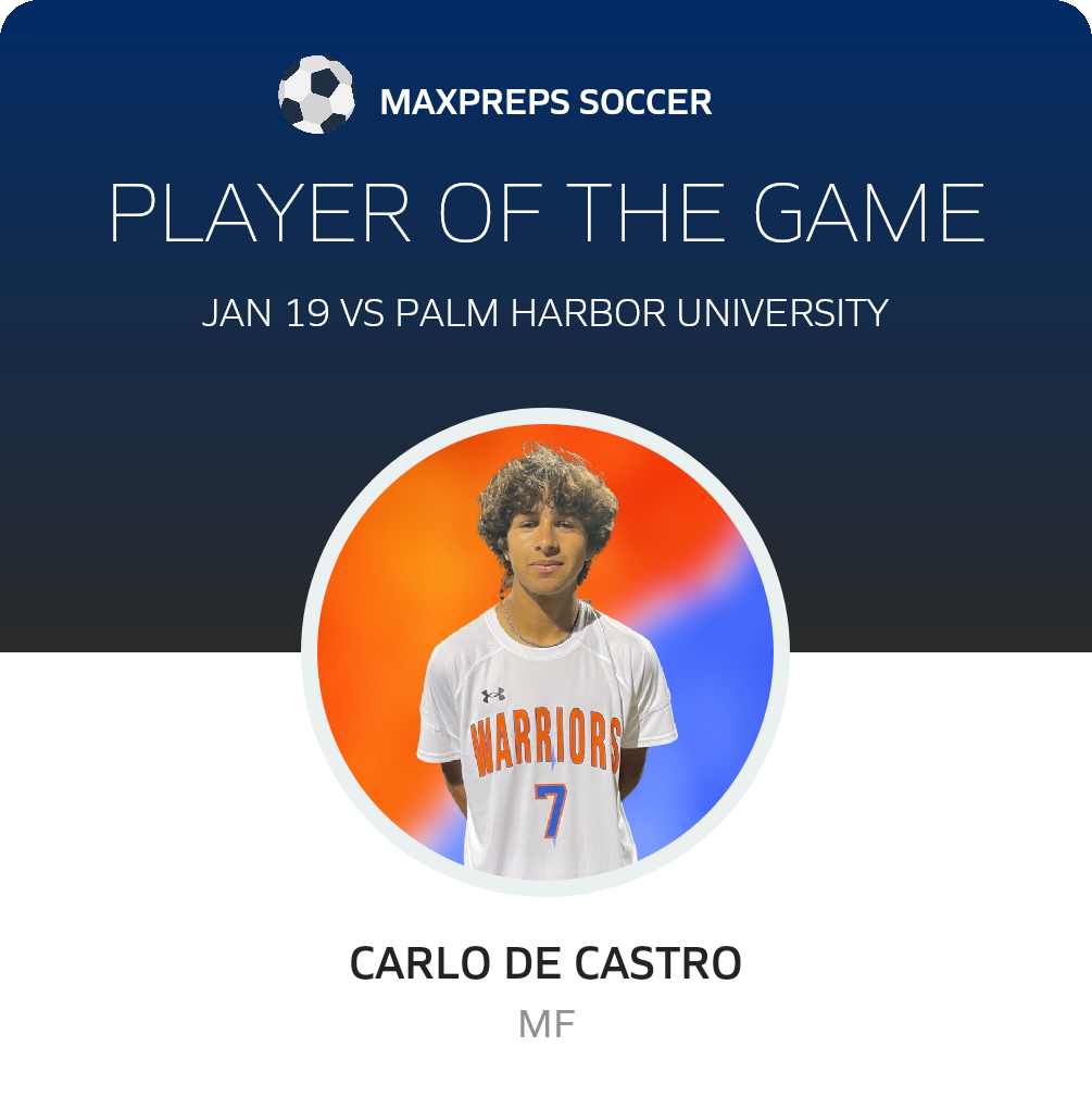 Congratulations to #7 Carlo De Castro for being selected the Osceola Soccer Player of the Match.