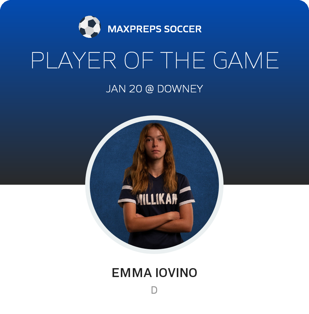 Congratulations to #17 Emma Iovino for being selected the Millikan Girls Freshman Soccer Player of the Match.