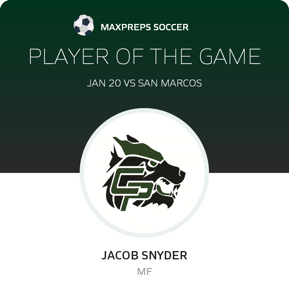 Congratulations to #3 Jacob Snyder for being selected the Cedar Park JV Soccer Player of the Match.