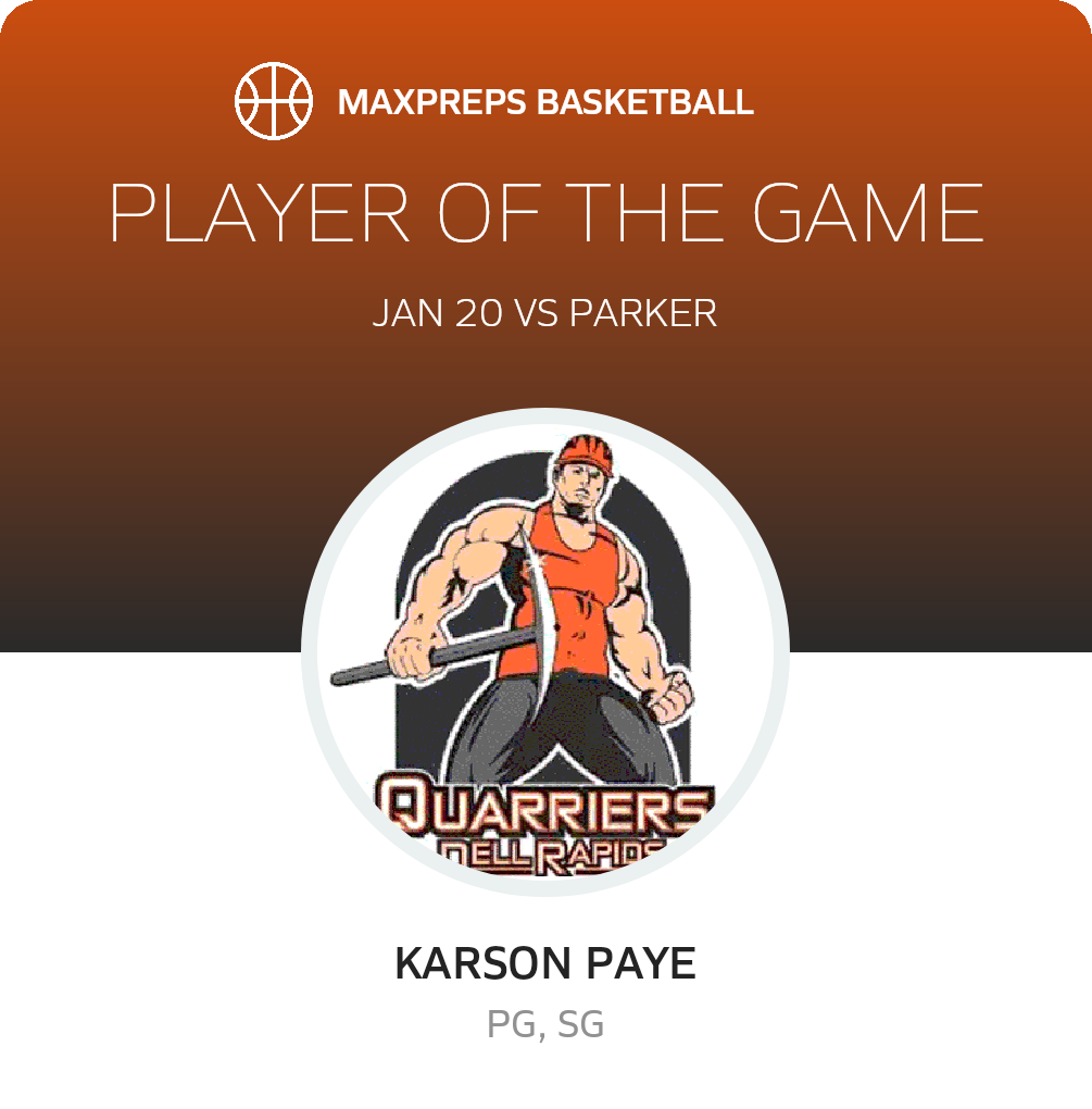 January 20, 2025: Dell Rapids, SD 57022 The Parker Pheasants basketball squad (Parker, SD), was crushed 61-32 in Monday's non-league battle with the host Dell Rapids Quarriers (Dell Rapids, SD)
