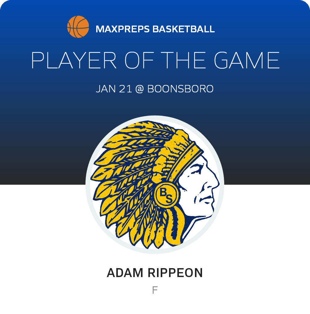 Congratulations to #21 Adam Rippeon for being selected the Berkeley Springs Freshman Basketball Player of the Game.