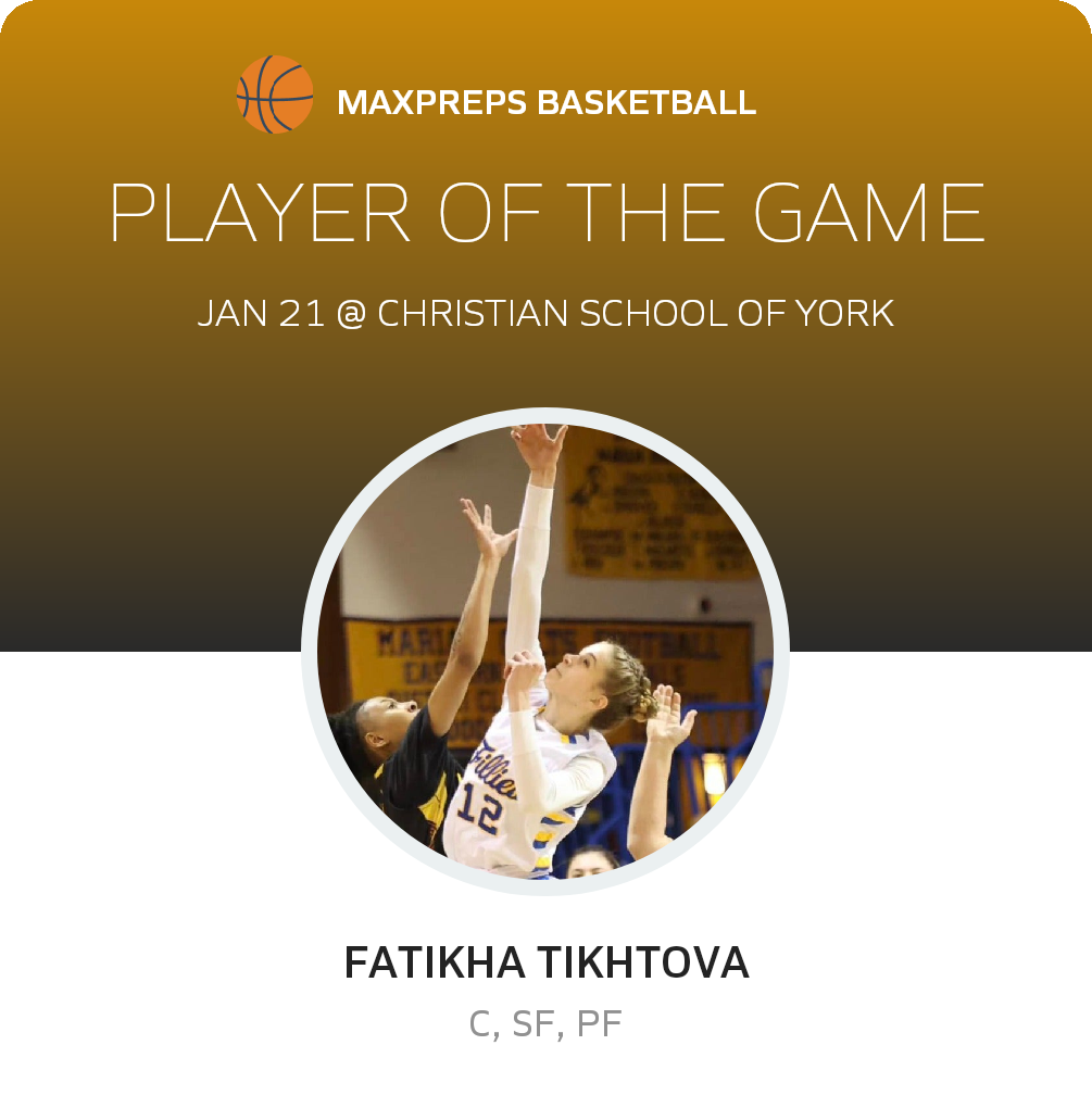 Congratulations to #12 Fatikha Tikhtova for being selected the Marian Catholic Girls Basketball Player of the Game.