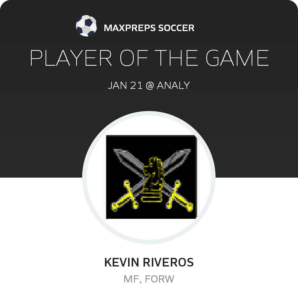 Congratulations to #14 Kevin Riveros for being selected the Rio Linda Soccer Player of the Match.