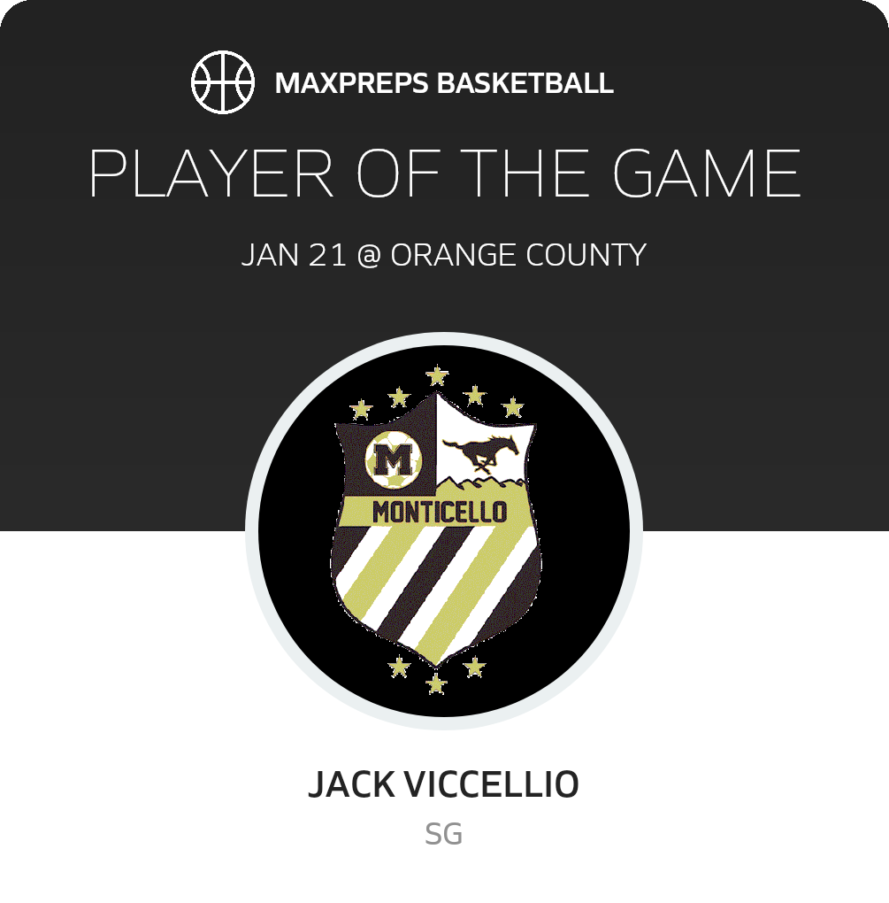January 21, 2025: Orange, VA 22960 In Tuesday's league test, the Monticello Mustangs (Charlottesville, VA) basketball squad got by the host Orange County Fighting Hornets (Orange, VA), by a final score of 56-55.
